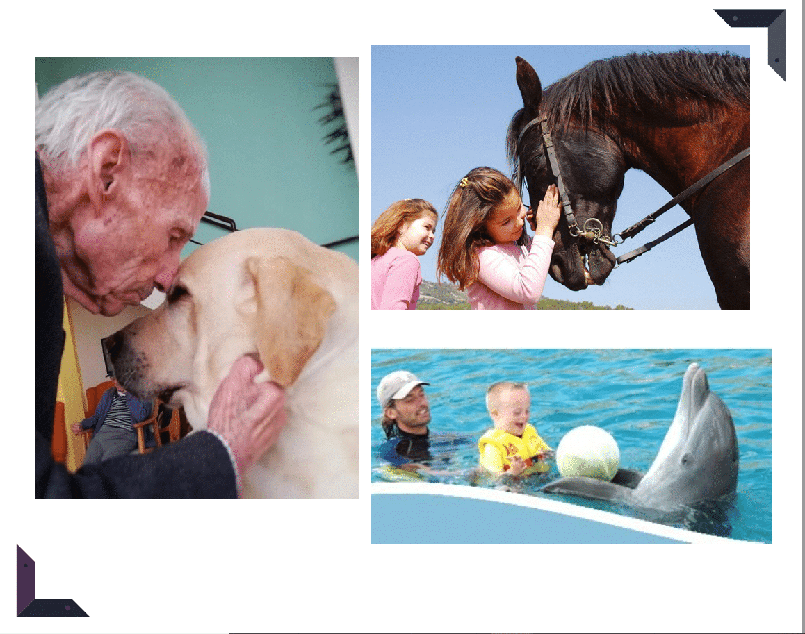 Actualmente la utilización de perros y gatos en el entrenamiento de niños con autismo, timidez patológica, trastornos emocionales o falta de sociabilidad, y, ancianos con Alzheimer o depresión se está mostrando altamente beneficioso en todas las experiencias llevadas a cabo en España y en otros países occidentales. Pero podemos ver ciertos indicios ya en siglo XVII donde se utilizaban los caballos o, en más en la modernidad con Freud quien utilizaba en su consulta perros para tranquilizar a los pacientes.